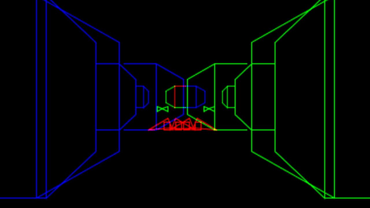 Çeviriliyor…The goal in 3D Narrow Escape is to successfully navigate a ship through the narrow, fast-moving passages of the warlord's fortress, destroy the defense forces and avoid space debris. The player's ship must also be maneuvered through small holes in a series of walls where fuel cells can be picked up to restore the ship's constantly decreasing fuel supply. If the player pilots their ship successfully, they will be faced with the warlord's own escape ship which must be hit several times to be destroyed, liberating the star system from the warlord's tyranny. Each level becomes more difficult as everything will move faster, fuel will be consumed more quickly, the holes in the walls will become smaller, and more menacing defense forces will appear. Each level of game play consists of two phases: 1. Passages: During the first phase of each level, the player must maneuver their ship through the narrow, moving passages with the joystick while shooting six of the warlord's defense forces with button 4. If any of the six are missed, they will go off-screen and be recycled to give the player another chance, but more fuel will be used. In addition to various defense forces which must be destroyed, there are extra targets that can be shot for additional points. Unlike the regular defense forces, the extra targets are non-threatening in that they will not shoot or crash into the player's ship. During this phase, space debris will also be shooting up through the play field. Space debris cannot be shot and can only be avoided by dodging it by moving from side to side. The walls of the narrow passage are also a danger to the player. If the player's ship crashes into a wall, a life will be lost. There are gaps between the moving walls which the player can maneuver quickly into and out of so as to avoid approaching enemies or space debris, however as game play becomes faster this will present a higher risk to crashing into oncoming walls. 2. Walls: If the passages are successfully navigated and the the required six defense forces are destroyed, the player will enter the second phase. This is a series of walls with holes. In the first level of the game, there are five successive walls, each with one hole through which the player must maneuver their ship. In the second level of play, there will be six successive walls, in the third level, seven walls, etc. Also the size of the holes will become smaller in each new level. The hole will be in a different location on each wall. After passing through the hole in each wall (but prior to entering the hole in the next wall) there will be a fuel cell which must be passed to pick up. If the fuel cells are missed, the game will continue, but the fuel gauge will be continuously depleting. Note: in early levels of the game, all of the fuel cells will not need to be captured. However as the game progresses and fuel is consumed faster, all of the fuel cells will need to be captured in order to make it through the next level. After successfully completing three levels of play, the player will come face-to-face with the warlord's escape ship in open space. The warlord's ship must be shot five times to be destroyed during the first encounter, seven times on the next encounter, nine times the next, etc. The warlord's ship will shoot torpedoes at the player's ship, which can be either avoided or shot at to be destroyed. If the warlord's escape ship is destroyed, the player will enter the next level of play and the game will continue.