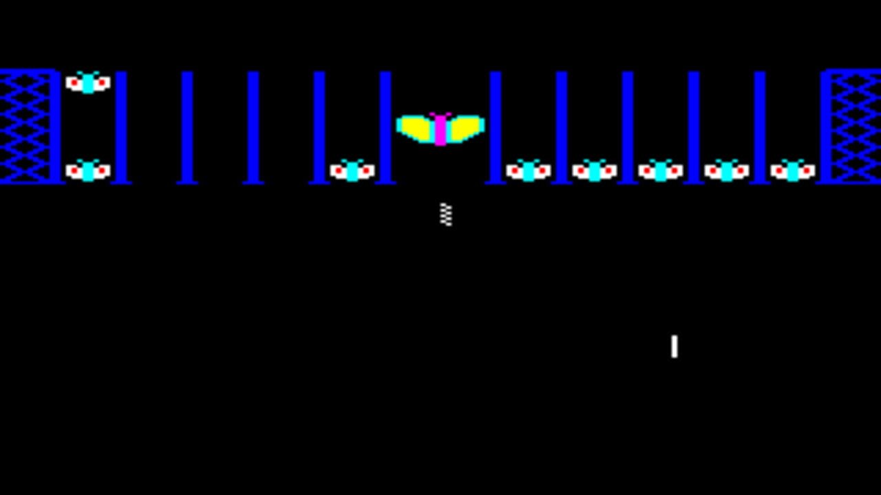Çeviriliyor…Alien Dropout is a fixed screen shoot 'em up based on the arcade game Astro Invader. Earth is threatened by killer moths that the player has to kill. On the screen there is one big moth in the middle and on each side of it are five columns. Smaller moths constantly enter the screen and one at a time they position themselves in the columns. When a column is full of moths they start descending towards the player who has to shoot them down with his laser gun before they reach him. The large moth in the middle is normally indestructible, but if 200 small moths are killed it will be released and the player gets a chance to kill it. Once it has been destroyed a new level begins with more powerful moths. The player can choose a skill level from one to six.