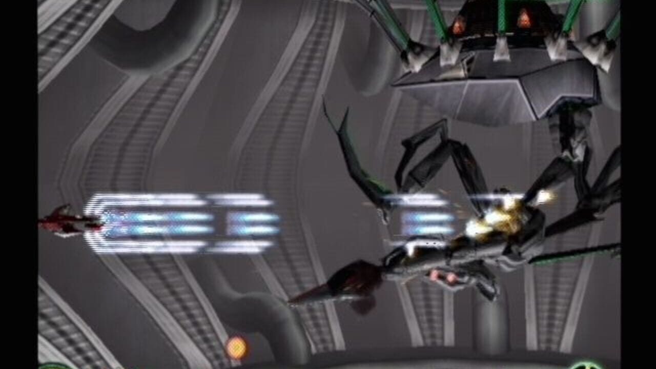 Uses completely polygonal graphics and features single player arcade, remix and practice modes through 6 enemy-infested stages, the last of which has four unique variations.