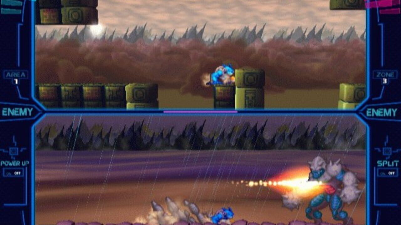 Çeviriliyor…Chronos Twins DX is a enhanced port of the Chrono Twins. Chronos Twins DX plays on the concept of time travel in a reassuringly unique manner as it is interwoven as a main game play element. To successfully complete levels, players will maneuver through an area and work within the limitations of each time period in a side-scrolling environment. The goal is to control both the present-time hero while exploring the planet to defeat alien threats. Both time periods are fully visible through a split-screen engine that displays the past and present versions of the exact same location.