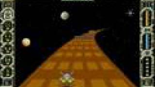 Eliminator puts you in control of a ship with a basic weapon, flying along at breakneck speed. There are barriers along the way to avoid, often set in quick succession, and lots of bad guys to shoot at or avoid - their shots must be avoided too. Some parts of the track are blocked unless you can shoot through obstacles before reaching them, or hit a jump pad. At some points you can change to travelling along the ceiling as well. Tokens can be collected en route, and used to obtain better weapons, but losing a life costs you the best one you’ve currently got.