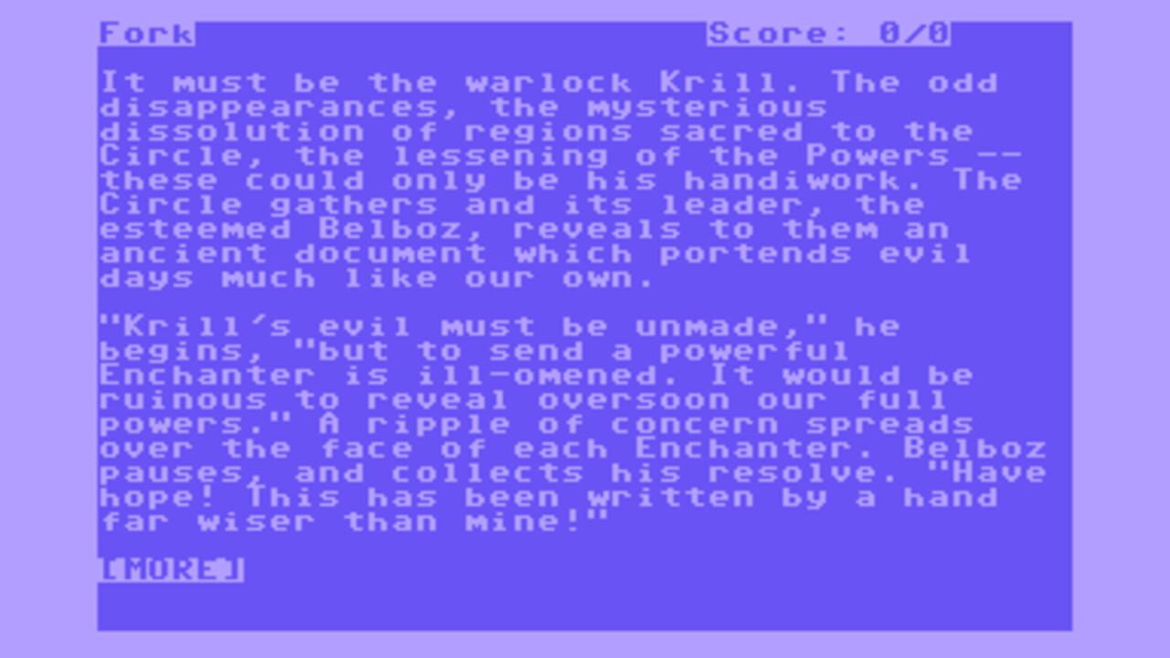 Bu oyun, Ursula K. Le Guin'in Earthsea serisinden ve Dungeons and Dragons'ın Vancian büyü sisteminden esinlenerek, büyülerin "eziyetle" hazırlanması gerektiği yeni bir büyü sistemi içerir. Earthsea serisinde olduğu gibi, her büyü bazı anlamsız "büyü kelimesi" ile temsil edilir ve oyunun metin ayrıştırıcısı tarafından fiil olarak ele alınır. Bu sayede, FROTZ büyüsü (nesneleri parlatıp ışık vermesini sağlar) >FROTZ BOOK yazarak, >PICK UP BOOK veya >READ BOOK yazdığınız gibi kullanılabilir.