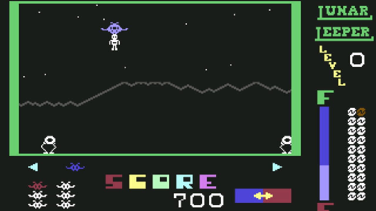 Çeviriliyor…In this game, you must guide your spaceship around while picking up hostages located on the surface, and bring them to safety. Your task becomes difficult by lunar leepers who leap up and try to grab you or the hostages that are picked up by your ship.