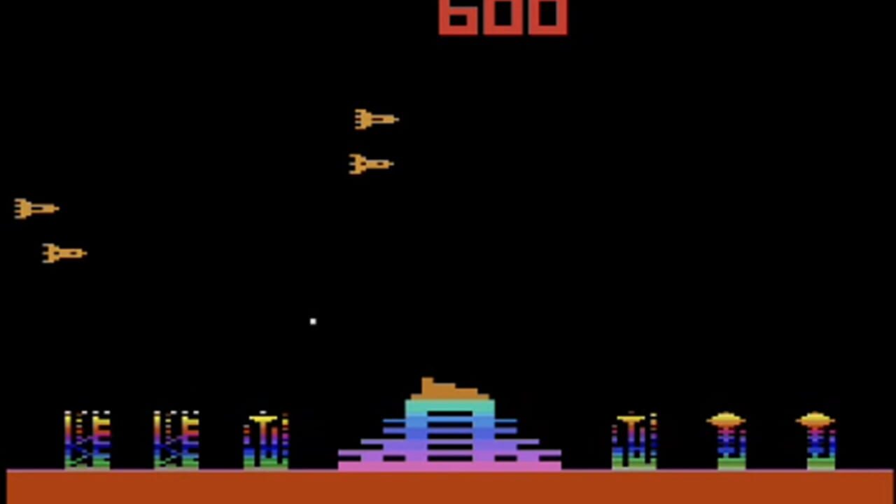 Çeviriliyor…M.A.D. (which stands for Missile Attack and Defense) is an arcade action game somewhat similar to Missile Command. You control a photon cannon at the bottom of the screen, and your goal is to protect six energy stations located to your left and right. Waves of rockets and other ships will fly by on the screen, and occasionally one will drop in an attempt to destroy one of the stations (as a warning on most levels, the enemy will turn white just before it drops). You need to make sure you shoot it before your energy station is destroyed! When all six energy stations are gone, the game is over. A two player variation is also included; one player will control the photon cannon, and the second player controls a cursor and can select when and where an enemy will drop. The players alternate between offense and defense in this version.