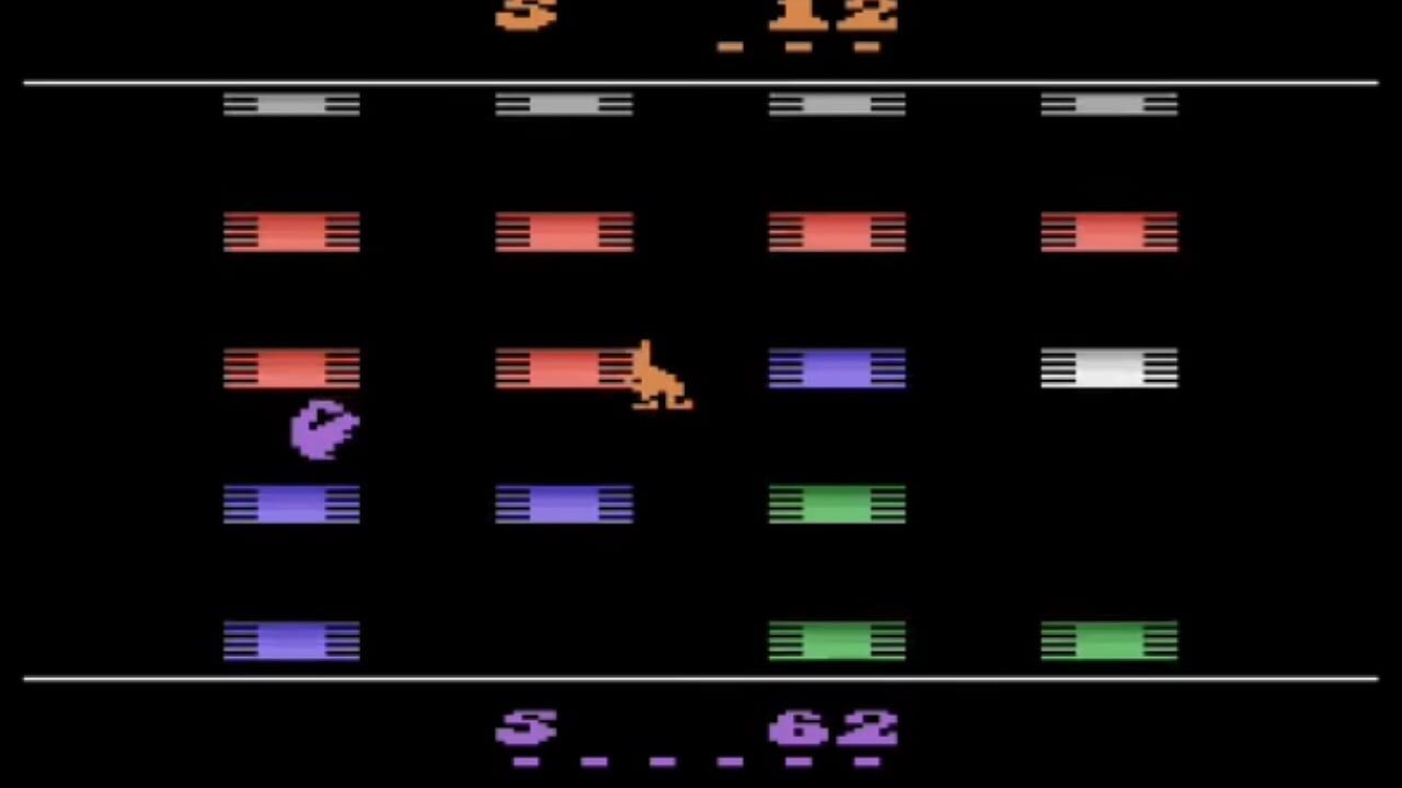 Çeviriliyor…Quick Step! is a unique take on the Q*Bert formula by adding two player action and a more frantic pace. You are a kangaroo who loves to paint trampolines green. However, a squirrel likes to paint them blue. Naturally, this can result in some hectic competition between the two. Jumping on one of the trampolines will turn it the color of your character and earn you points. During the game the trampolines scroll down to the bottom of the screen before they disappear. Naturally, you must avoid being on a trampoline when it disappears, otherwise you will lose a life.