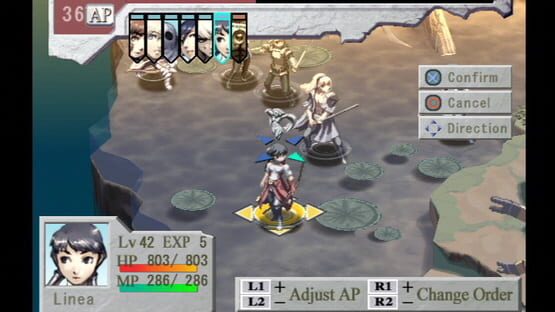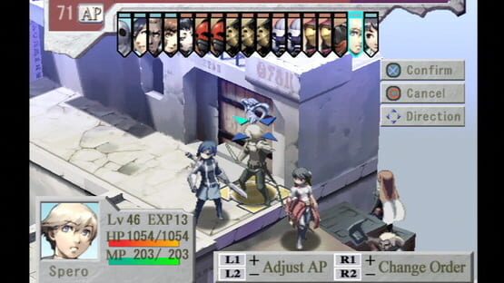 Most battles are triggered based on story events, and are completed when the stated object has been accomplished by the player, be it defeating all enemies, defeating a boss, or performing a specific task. At the end of each battle, the players gain a summery of their performance and spoils gained. The game uses the turn-based Replaceable Action Position battle system, much of which was carried over from the battle system used in Hoshigami: Ruining Blue Earth. Players navigate the field across a grid-based map, which can include obstacles such as bodies of water and high structures. Character positioning within the environment can be used to their advantage, such as an archer gaining higher accuracy when at a high point in the level. Character actions are arranged in a set order, and each character's weapon dictates their attack range. Each time a character performs an action, they gain experience points and additional Skill Points (SP) that can be used to purchase supplies or raise individual character stats. Three types of Skills can be equipped for characters: Action Skills, a special attack that player execute for a certain amount of Magic Points (MP); Support Skills, which grant passive abilities such as scaling higher obstacles; and Zone Skills, which grant passive abilities to both the equipped character and those in close proximity to them.
