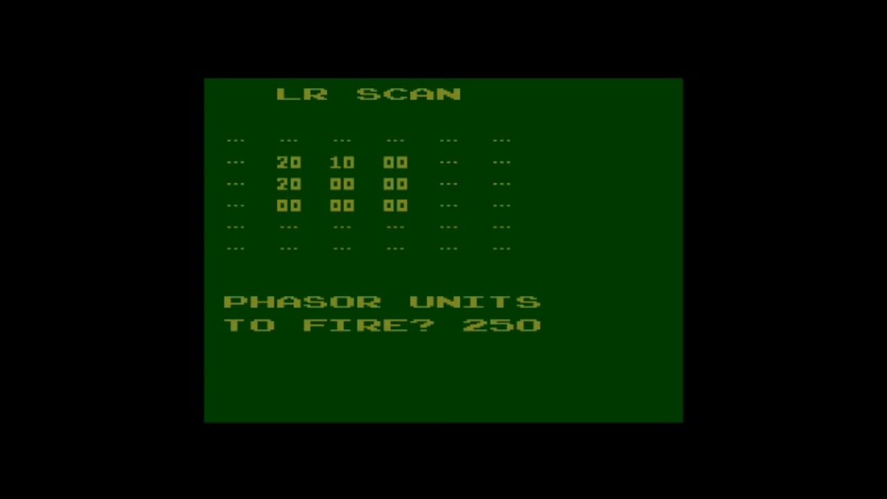 Çeviriliyor…Stellar Track is a text- and turn-based strategy game where the player controls a Terran Super Warship that must clear out alien ships from all quadrants of a galaxy. It was a conversion of a college mainframe Star Trek game released by Sears in 1981. It is a suitably primitive game where you have to run scans to locate enemies and starbases on a 6 x 6 galactic map. You run scans to find the enemies then must warp to their quadrant to confront them with either phasers or photon torpedoes. You use the joystick to determine the numerals of where you intend you to travel to.