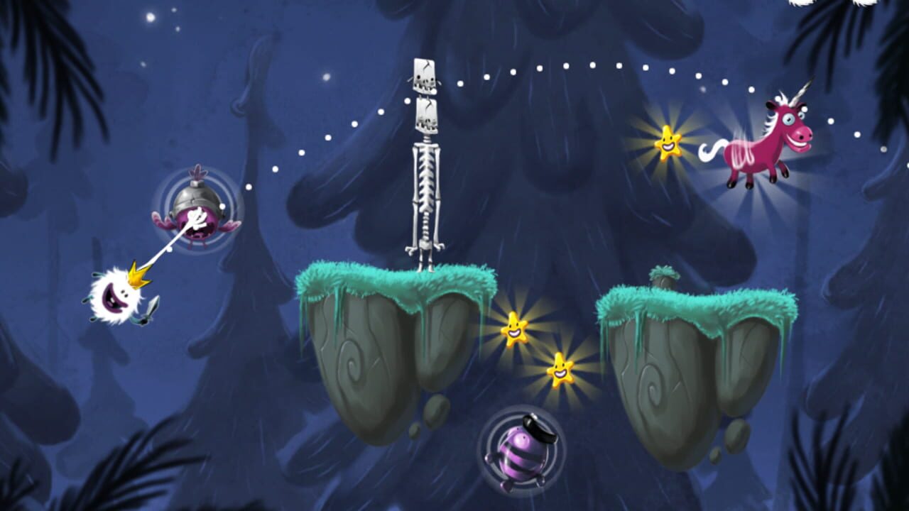 Fling the King across levels, through obstacles and traps to grab stars and reach his flying unicorn. Use simple touch controls to aim the King’s trajectory, move obstacles out of his way, and use power-ups such as the sticky grappling point and the boxing glove. Your kingdom is in trouble. What are you waiting for?