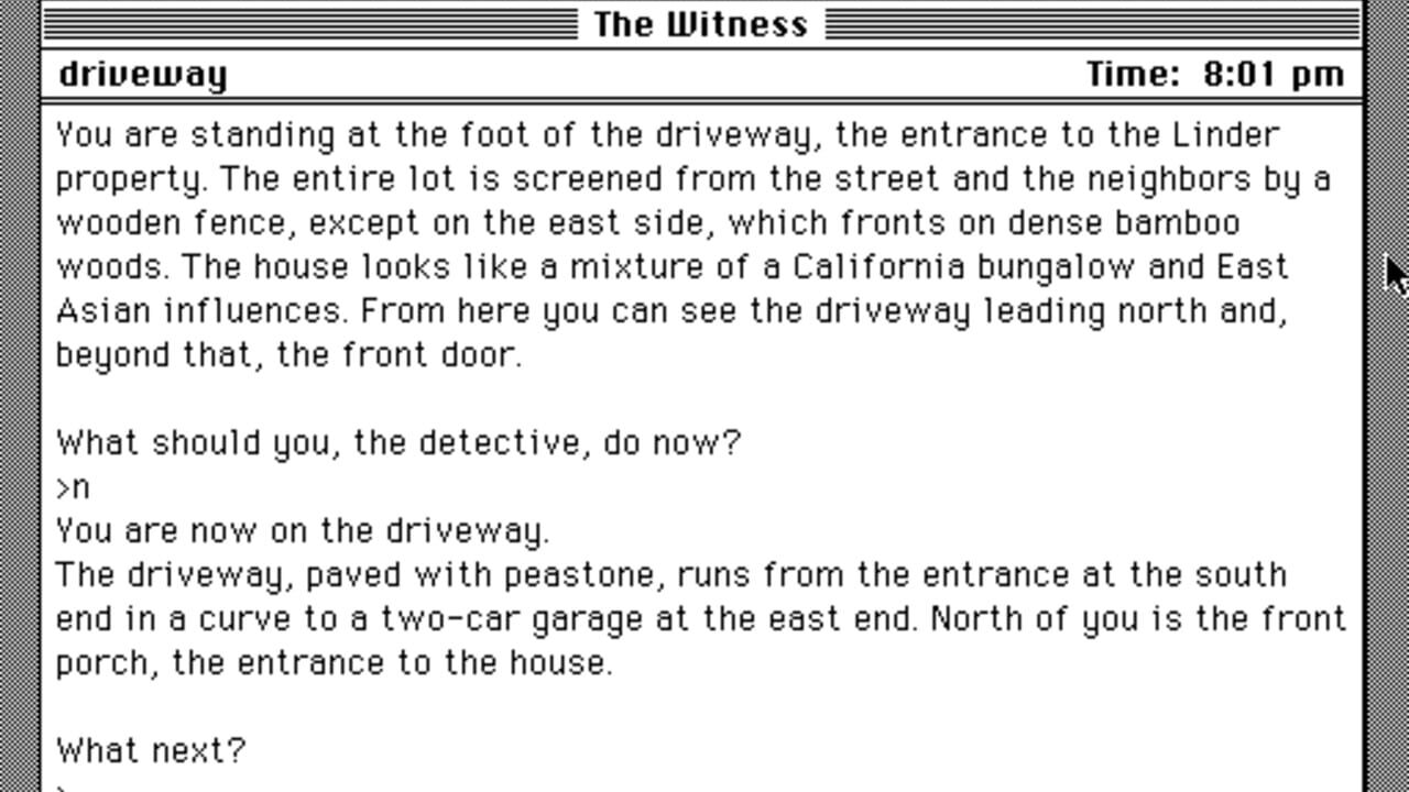 Çeviriliyor…The Witness was the seventh game released by interactive fiction pioneers Infocom. The player character is a detective who has been summoned to the Cabeza Plana, California office of Mr. Linder, a millionaire. Linder fears that his life is in danger... and indeed, as he sits in his office with the player, he is murdered before the player's eyes. The player then must solve the murder.