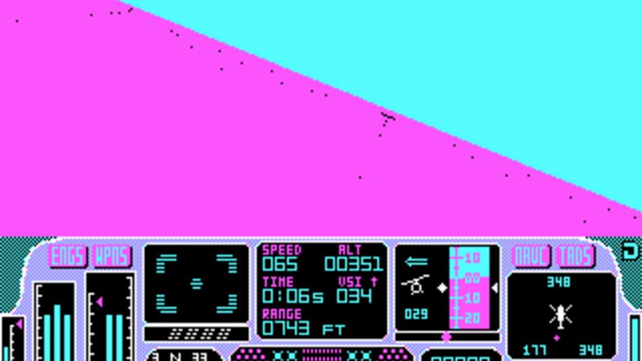 Çeviriliyor…A wireframe flight simulator based around the Apache AH-64 helicopter.