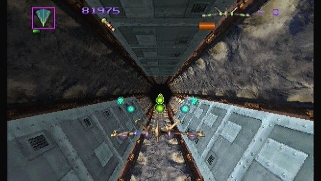 Çeviriliyor…It's the Earth's Stellar Guard against the alien Drak-sai. Now's the time to strap in and set the skies on fire! Blistering bombs explode; shields buckle but hold. Your reflexes better be faster than theirs; 'cause there's trouble over every mountain and in every tunnel. Bury the stick in a snap roll. Scream through 20 rounds of non-stop destruction and killer 3D texture-mapped terrains. Save Game feature allows time for refueling. Space sickness bags not included.